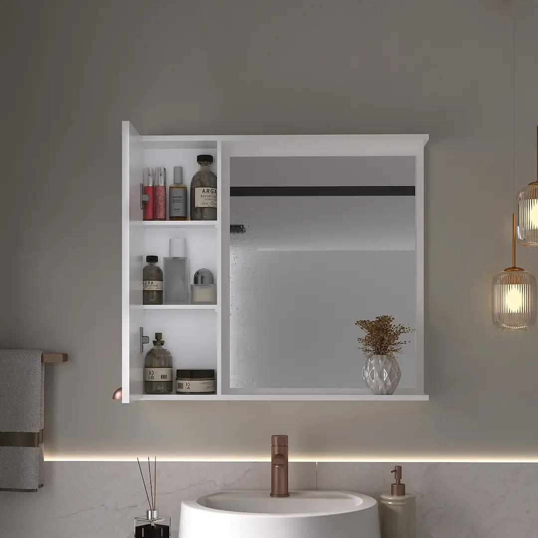 - Espelheira com porta e prateleiras