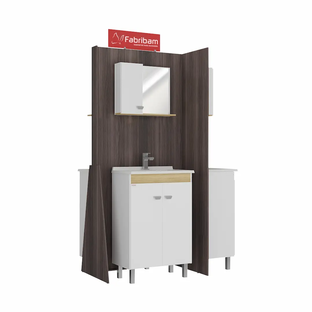 Medidas do Expositor: Largura 82 cm | Altura 204 cm | Profundidade 67 cm - Expositor para 2 gabinetes de até 85 cm e 1 gabinete de até 82 cm: