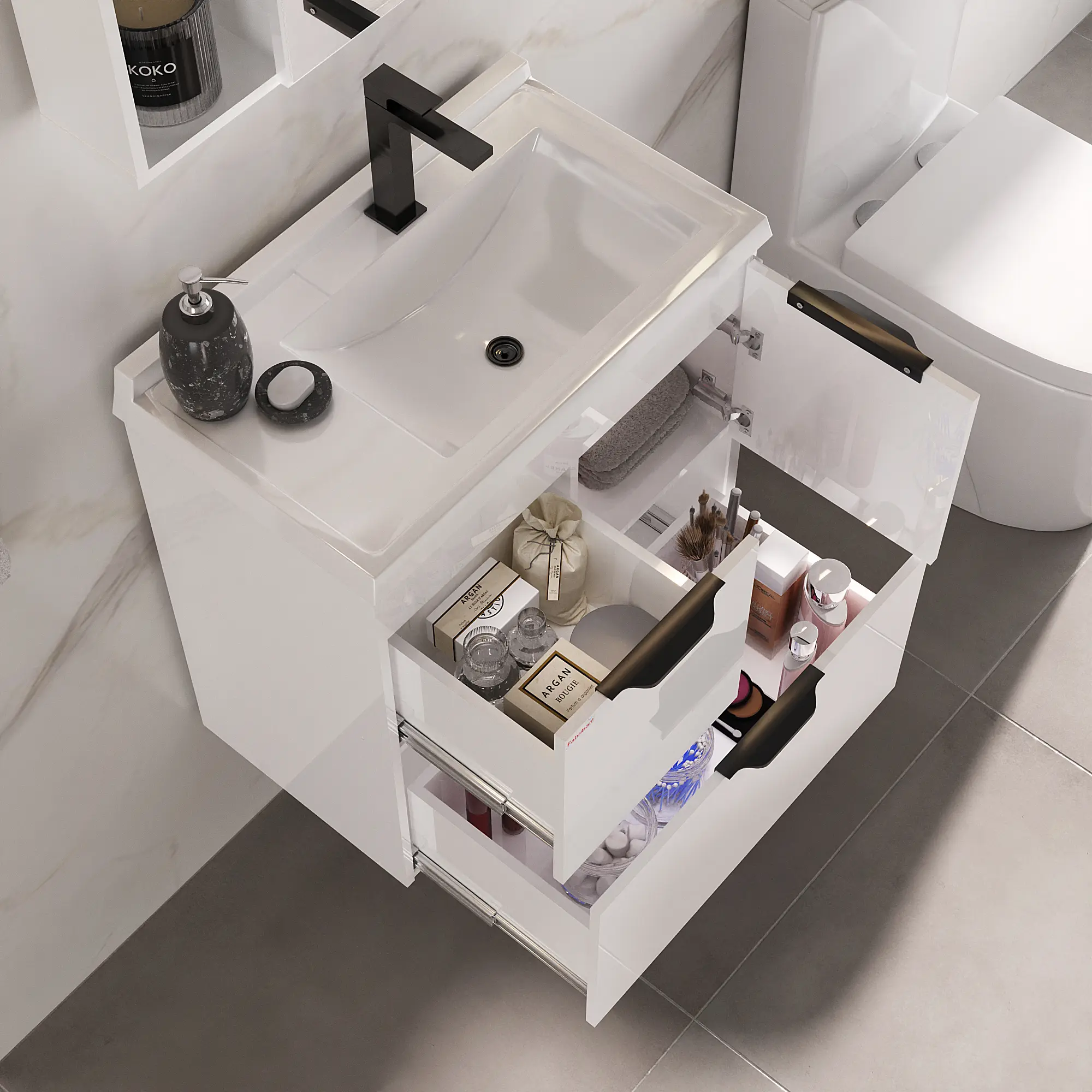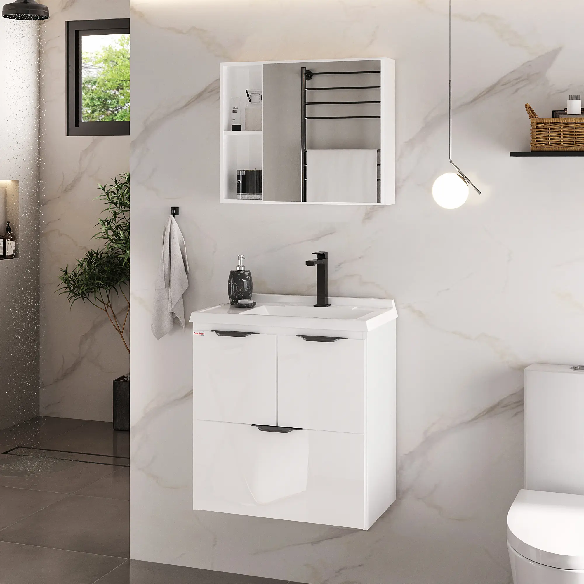 O Conjunto Luiza é ideal para quem busca um design moderno e funcional. Na cor chumbo, traz um toque contemporâneo e sofisticado ao banheiro. O gabinete oferece gavetas com deslize suave e porta com amortecimento para manter tudo organizado. A espelheira, com prateleiras e nichos, completa o ambiente com elegância.