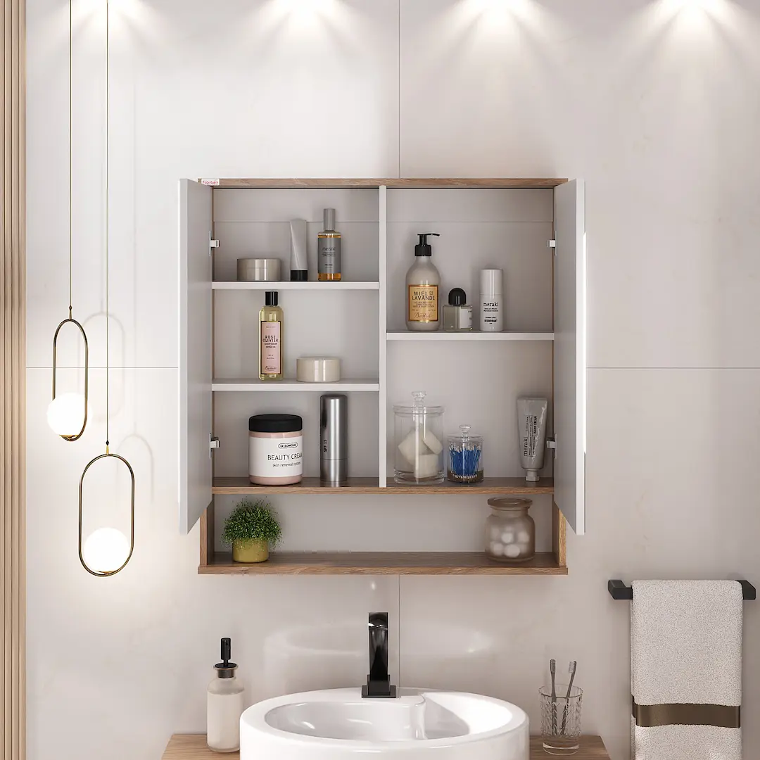 • Espelheira com 2 portas e prateleiras
