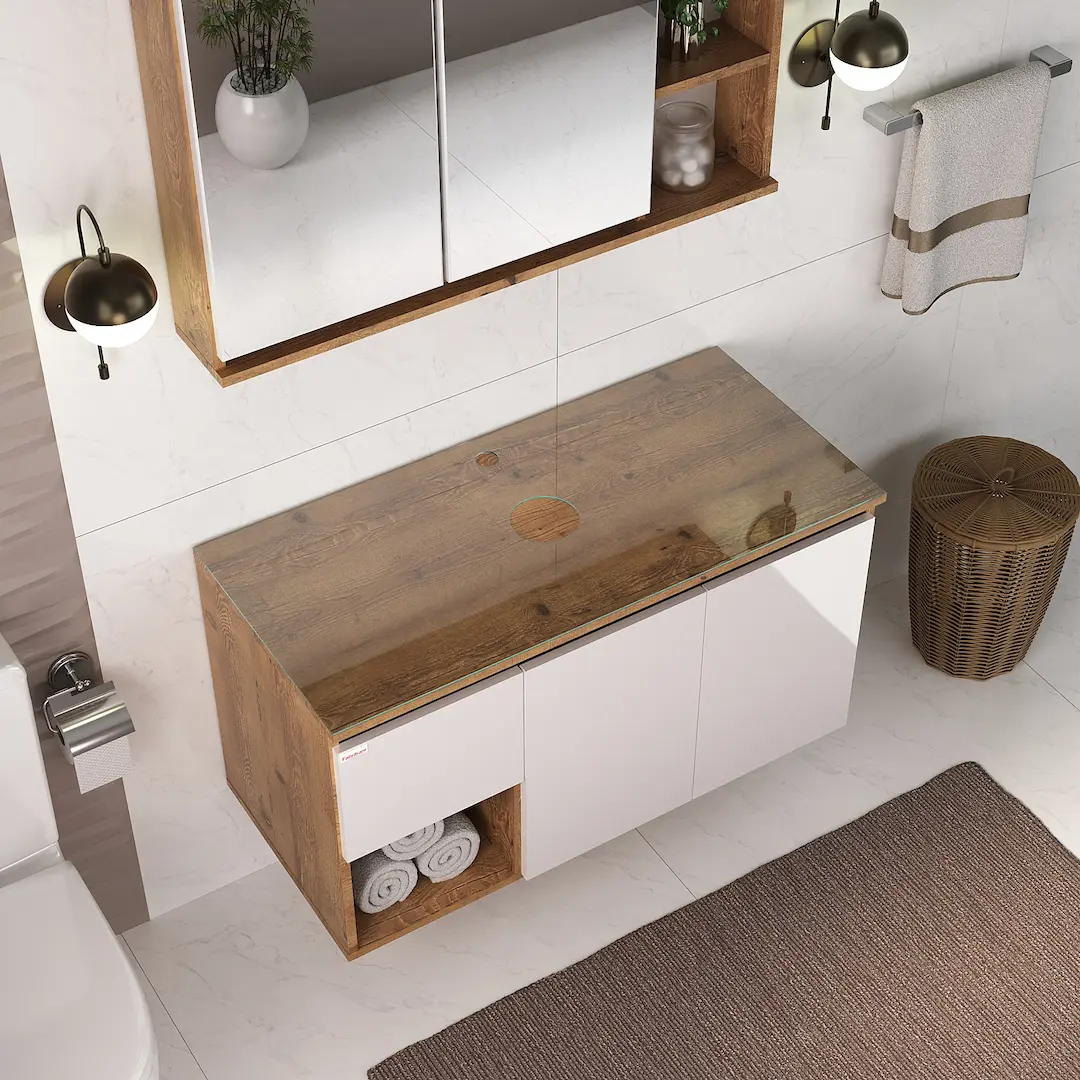 O Tampo de Vidro de 90cm é indicado para o Gabinete Apolo, como uma solução adicional de proteção ao tampo de MDF, garantindo maior durabilidade e simplificando o processo de limpeza. Este tampo é instalado sobre a bancada existente e é feito de vidro comum (não temperado), garantindo transparência e leveza ao ambiente.