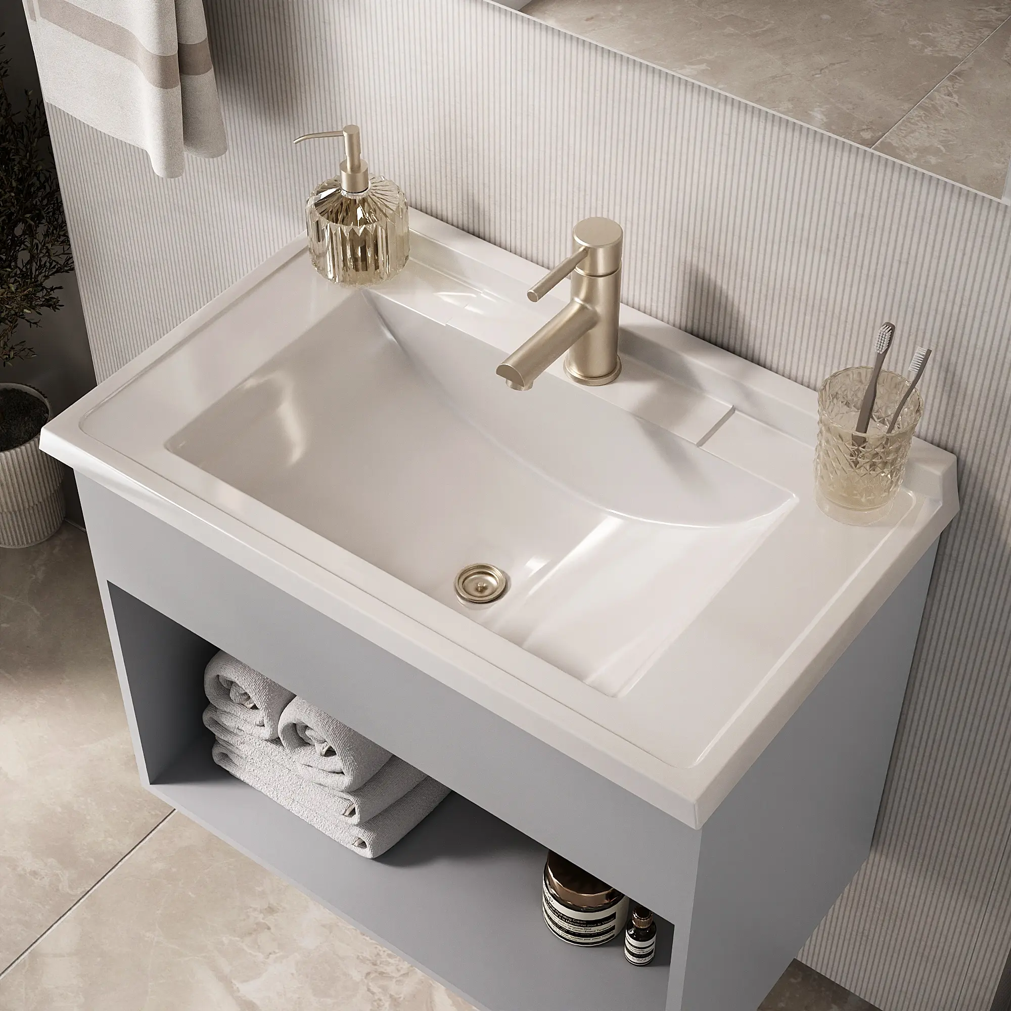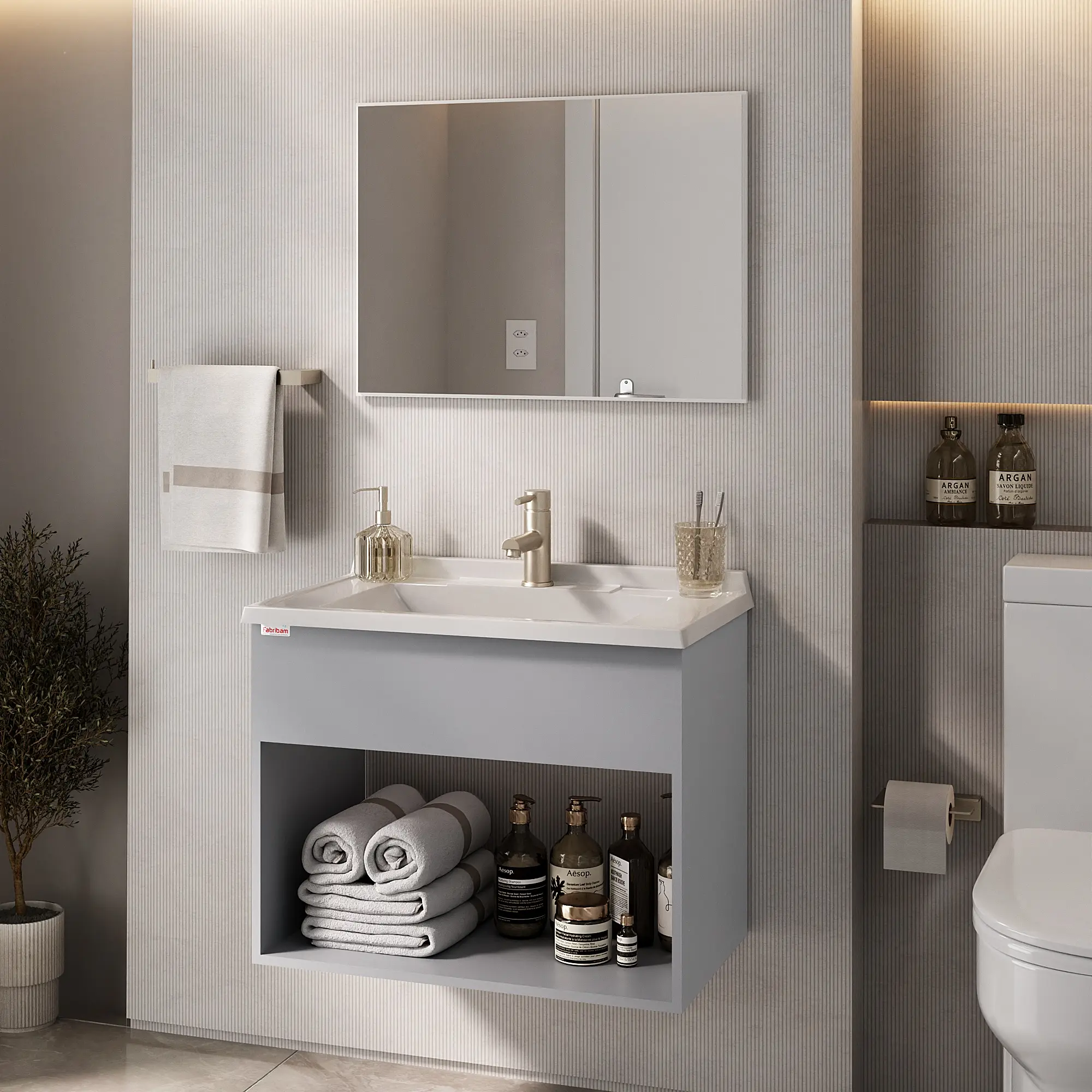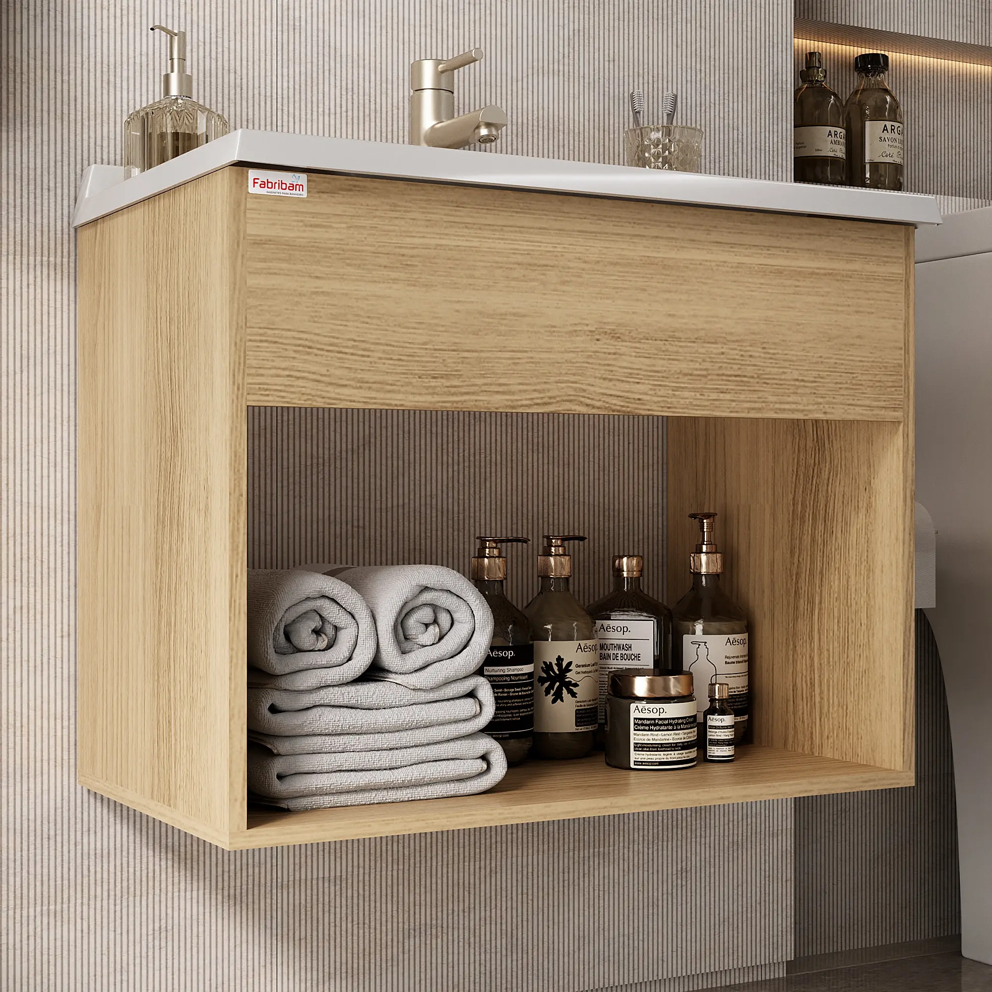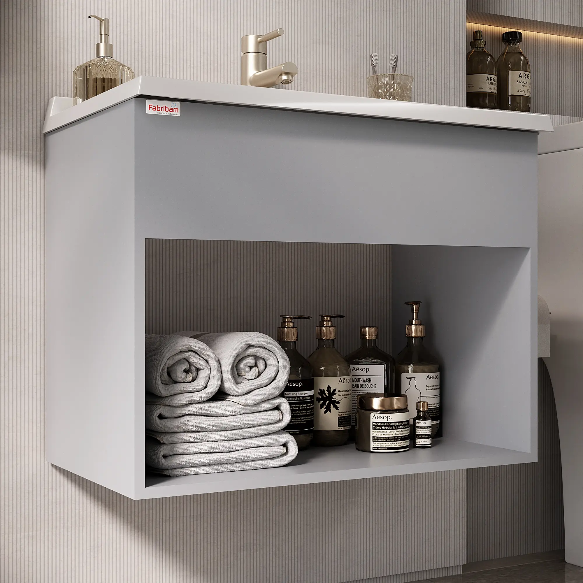 O Conjunto Anita é uma ótima opção para quem busca praticidade e um visual moderno para o banheiro. Seu gabinete suspenso com nicho aberto ajuda a manter os itens do dia a dia sempre por perto, além de deixar o ambiente mais leve e organizado. Produzido em MDF/MDP, conta com pintura UV e fita de borda em PVC, que contribuem para um bom acabamento. A espelheira com estrutura em MDP complementa o conjunto com funcionalidade, enquanto o lavatório em mármore sintético une beleza, leveza e praticidade para a rotina.