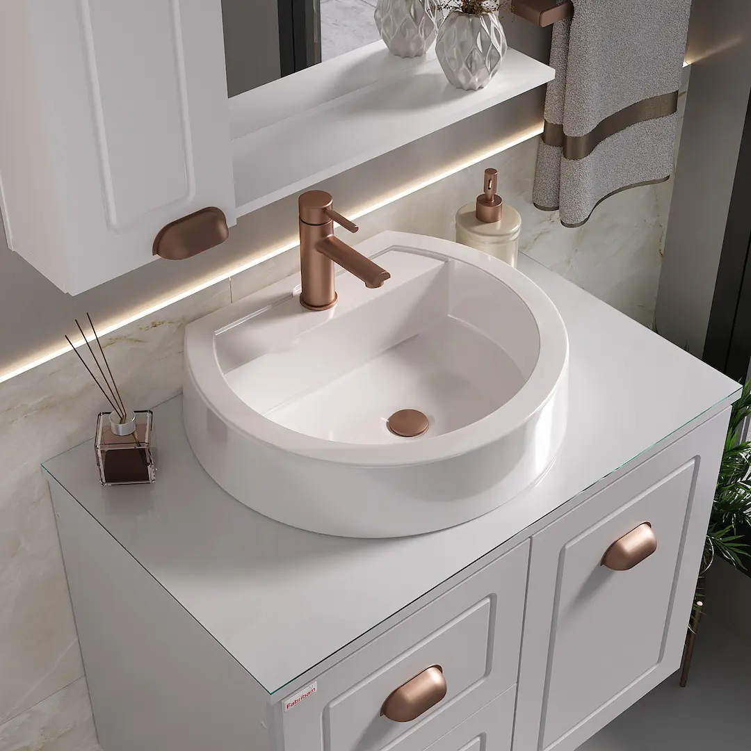A Cuba Semi Redonda traz um formato diferenciado que une charme e funcionalidade. Feita em mármore sintético, possui acabamento em alto brilho que garante resistência e facilita a limpeza. Seu design contemporâneo é ideal para renovar o banheiro com um toque de elegância.